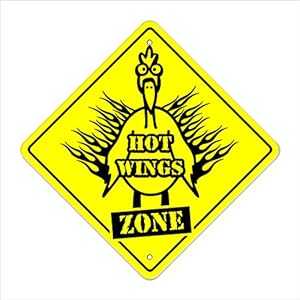 ウィングス クロッシング サイン ゾーン シン 屋内/屋外 高さ17インチのプラスチックサイン、バッファローホットソース、チキンウィング、スパイシーなレストランバー、テイクアウトフード。 SignMission Wings Crossing Sign Zone Xing Indoor/Outdoor 17"