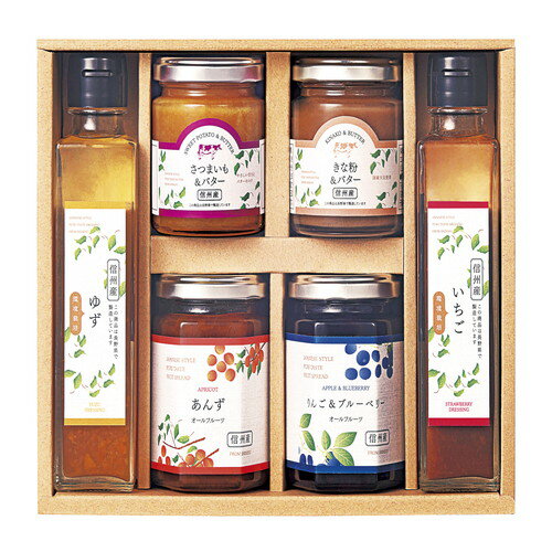 ●紙袋のご用意はできません。●ギフト商品のため納品書は同梱されません。●ご注文者様宛以外へ発送の場合、お届け先様の転居・住所不明・長期不在などが発生した際は商品をご依頼主様へ転送させていただきます。バラエティ豊かなセットで、お菓子作りのアレンジや料理のアクセントにもご使用頂け、料理の幅が広がります。 スプレッドは砂糖を使わずに仕上げました。トーストに塗ったり、ヨーグルトにかけて、ペーストはトーストに塗るだけじゃなくお菓子作りのアレンジにも使用できます。ドレッシングは、サラダだけでなく、いろんな料理のアクセントとしても最適です。■(あんずスプレッド・りんご&ブルーベリースプレッド)各140g、(さつまいも&バターペースト・きな粉&バターペースト)各110g、(ゆずドレッシング・いちごドレッシング)各150ml 【乳成分】■箱190×235×65mm【用途】引出物 結婚内祝 婚家 結婚祝 出産内祝 出産祝 仏事 快気 新築 記念 贈答 お返し お祝い 御祝 香典返し 法事 法要 引越し 新築祝い お中元 お歳暮 敬老の日 還暦 賀寿 母の日 父の日 自分へのご褒美 自分へのお取り寄せグルメなど 快気祝い 成人お祝い 金婚式 銀婚式 入籍記念日 白寿 卒寿 米寿 傘寿 喜寿 古希 還暦祝い 賀寿 長寿祝い 緑寿 入園祝い 入学祝い 卒業祝い 就職祝い 新築祝い 開店祝い お土産 お誕生日プレゼント お年賀 お中元ギフト 残暑見舞い●紙袋のご用意はできません。 ●ギフト商品のため納品書は同梱されません。 ●ご注文者様宛以外へ発送の場合 お届け先様の転居・住所不明・長期不在などが発生した際は 商品をご依頼主様へ転送させていただきます。