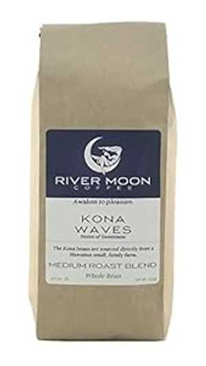 リバームーンコーヒー、コナコーヒー全豆、ミディアムロースト、5ポンド、コナウェーブハワイアンコーヒーブレンド、100%アラビカ、80オンス River Moon Coffee, Kona Coffee Whole Bean, Medium Roast, 5 pounds, Kona Waves Hawaiian Coffee Blend,