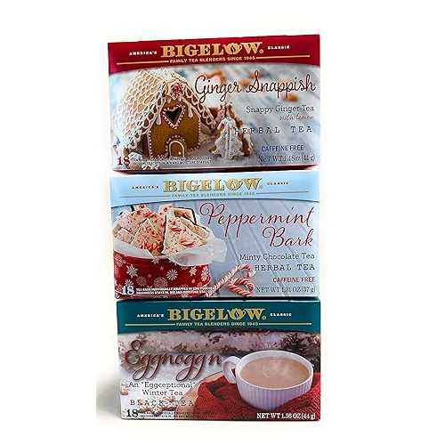 エッグノッグン、ジンジャー スナピッシュ、ペパーミント バーク フレーバー - ビゲロー ホリデー ティー 3 種類のバラエティ バンドル - 合計 54 ティーバッグ Bigelow Tea Bags Eggnogg'n, Ginger Snappish, and Peppermint Bark Flavors - V
