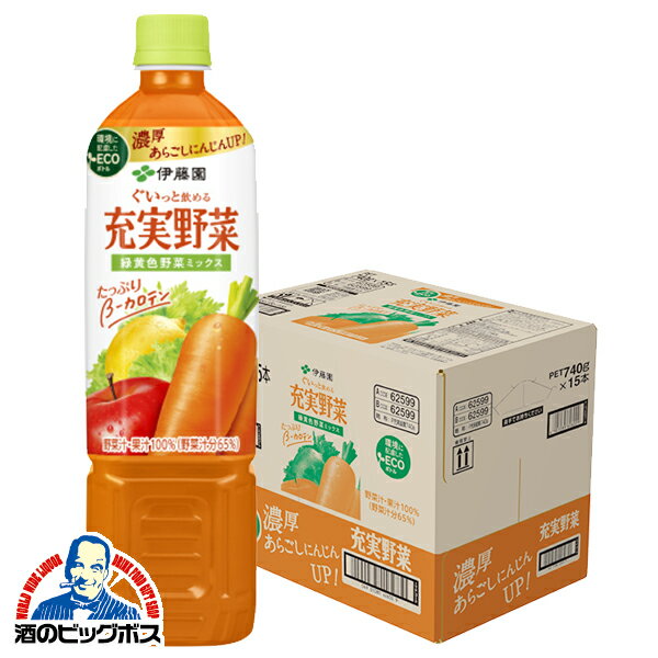 ●にんじん本来の甘みと栄養を引き出す伊藤園独自製法で搾ったにんじんピューレを増量し、濃厚感がUPしました。●にんじんを主体とする20種類の野菜と、5種類の果実を使用した野菜・果実混合飲料です。野菜汁・果汁100%(野菜汁分65%)●健康・美容にうれしい「β-カロテン」が野菜由来でたっぷり摂れます。●3〜4日でおいしく飲みきることができる容量です。●環境に配慮したエコボトルを採用(エコボトルとは、リサイクルPET樹脂、または植物由来PET樹脂を含んでいる環境に配慮したボトルです)。●容器/ペットボトル●内容量/740g●カロリー/66kcal●成分/たんぱく質:1.1g、脂質:0g、炭水化物:15.0g(糖質:14.0g、糖類:12.5g)、食物繊維総量:0.5〜2.0g、食塩相当量:0〜0.4g、カリウム:116〜641mg、ビタミンK:1〜20μg、カルシウム:3〜52mg、ビタミンA:398〜1532μg、葉酸:1〜38μg、その他栄養成分:β-カロテン3935〜14420μg、GABA11mg(糖類、食塩相当量は主に野菜や果実に由来します。)●原材料/[原材料]野菜汁(にんじん、赤ピーマン、大根、きゅうり、インゲン豆、ピーマン、ケール、レタス、アスパラガス、かぼちゃ、ブロッコリー、セロリ、あしたば、小松菜、パセリ、クレソン、キャベツ、ラディッシュ、ほうれん草、三つ葉)、果汁(りんご、レモン、ぶどう、アセロラ、オレンジ)、りんごエキス [添加物]香料●表示すべきアレルギー項目/りんご●賞味期限/商品の発送時点で、賞味期限まで残り90日以上の商品をお届けします。●1ケース=15本※内容量は1本あたり。※カロリー、成分はコップ1杯(180g)あたり。※メーカー都合により、パッケージデザインおよび仕様が変更になる場合がございます。●メーカー/伊藤園●型番/62599●JANコード/4901085625996※メーカー都合によりパッケージ・仕様等が予告なく変更される場合がございます。ご了承ください。本商品は自社サイトでも販売しているため、ご注文のタイミングにより、発送までにお時間をいただいたり、やむをえずキャンセルさせていただく場合がございます。※沖縄へのお届けは別途1650円(税込)の送料がかかります。※本商品はメーカーより取寄せ後の発送となるため、配送日はご指定頂けません(お届けするまでに3〜10営業日程度かかります。品切れなどの理由で遅れる場合は弊社よりご連絡します)。また、ご注文後のキャンセル・返品はお受けできません。予めご了承ください。