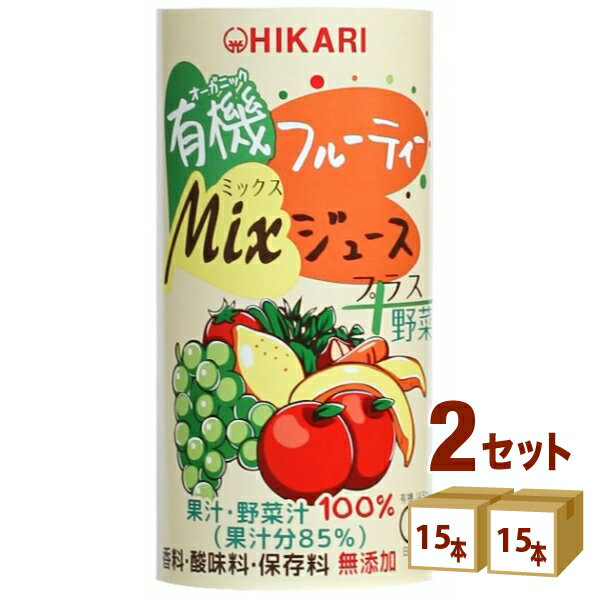 光食品 ヒカリ 有機フルーティーMixジュース プラス 野菜 195g×15本×2ケース (30本)【送料無料※一部地域は除く】 オーガニック