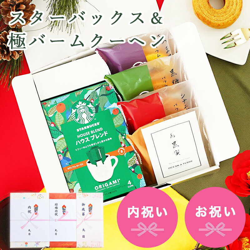 お歳暮 冬ギフト 内祝い スタバ コーヒー ギフト スターバックスコーヒー&極バームクーヘン 御祝用セット【お菓子 お祝い ギフト スイーツ グルメ 御歳暮 手土産 出産内祝い 結婚内祝い 個包装 オリガミ セット 送料無料】