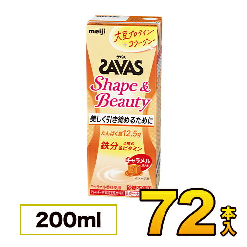 【3ケース】 明治 SAVAS ザバス ミルクプロテイン Shape&Beauty キャラメル風味 200ml×72本入り プロテイン ダイエット プロテイン飲料 プロテインドリンク スポーツ飲料 清涼飲料水 ソフトドリンク 紙パックジュース meiji 【送料無料】【代引き不可】