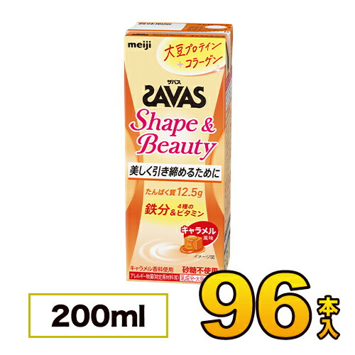 【4ケース】 明治 SAVAS ザバス ミルクプロテイン Shape&Beauty キャラメル風味 200ml×96本入り プロテイン ダイエット プロテイン飲料 プロテインドリンク スポーツ飲料 清涼飲料水 ソフトドリンク 紙パックジュース meiji 【送料無料】【代引き不可】