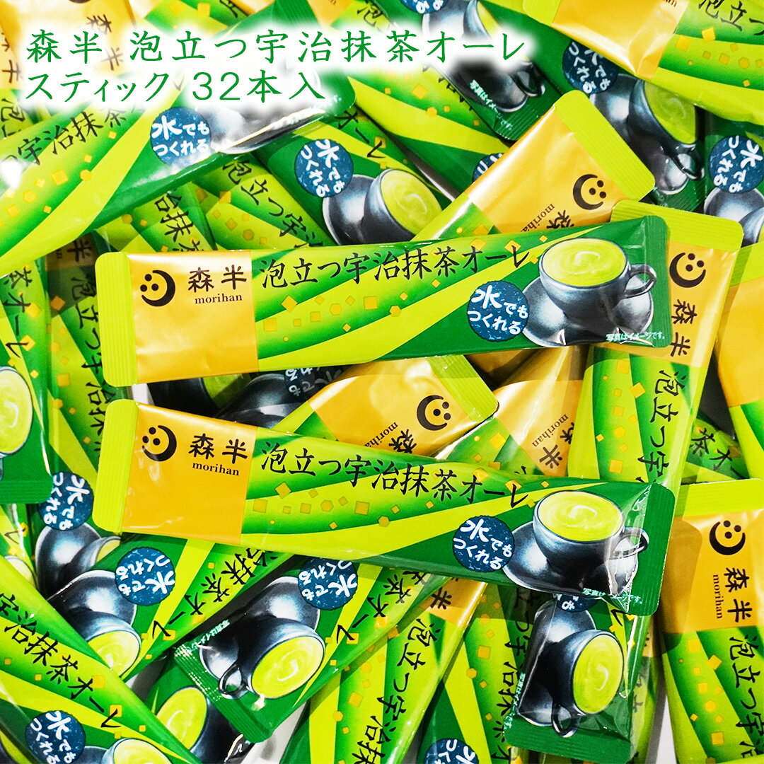 森半 京都 泡立つ宇治抹茶オーレ スティック 32本(16本×2袋) 宇治抹茶 インスタントスティック 宇治 宇治抹茶 抹茶オレ インスタント メール便 送料無料