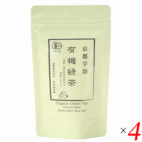 【BF限定!100円クーポン!学割2倍!】童仙房茶舗 京都宇治 有機緑茶 24g(2g×12)ティーバッグ 4個セット