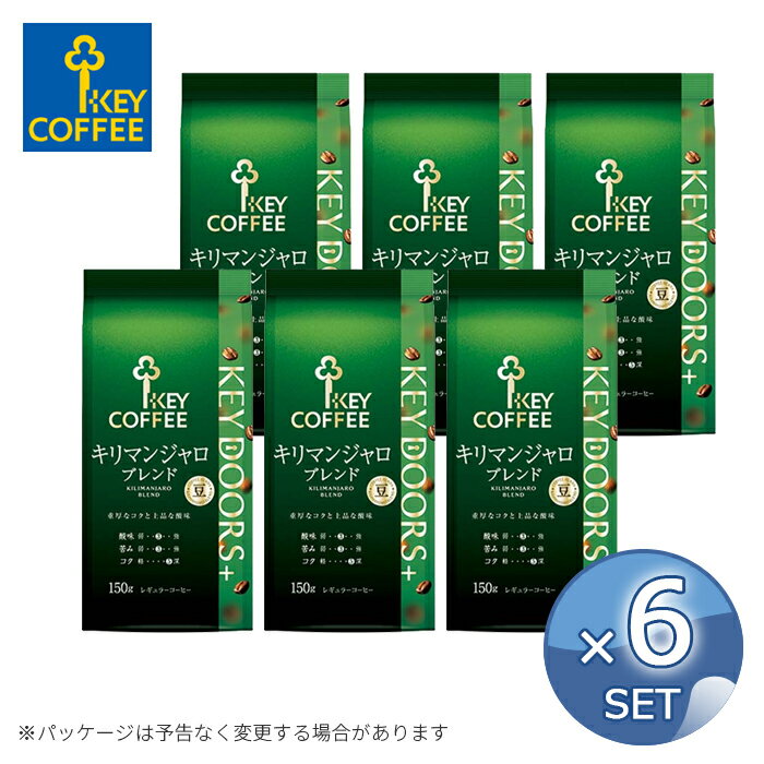 6個セット キーコーヒー KEY DOORS+ キリマンジャロブレンド(LP)【豆】 150g keycoffee【送料無料】【パッケージは予告なく変更する場合がございます】 【キャンセル 返品 交換不可】【沖縄・離島配送不可】