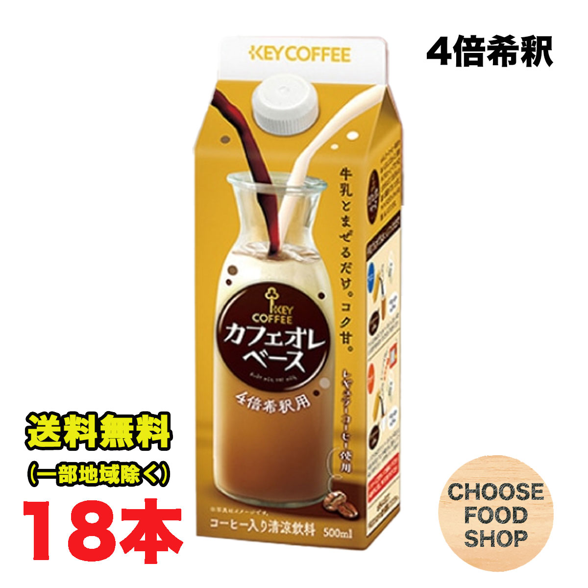 キーコーヒー カフェオレベース 500ml×18本(6本×3ケース)セット 4倍希釈 加糖 KEY レギュラーコーヒー使用 珈琲 送料無料(北海道・東北・沖縄除く)