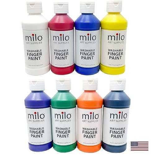 milo Kid's Washable Finger t Set of 8 Colors 8 oz Bottles Safe and Non-Toxic Made in the USA Art & Craft ts for Kids, Toddlers, Pre School Supplies ting Set for Children Easy Pour and Squeeze Bottles