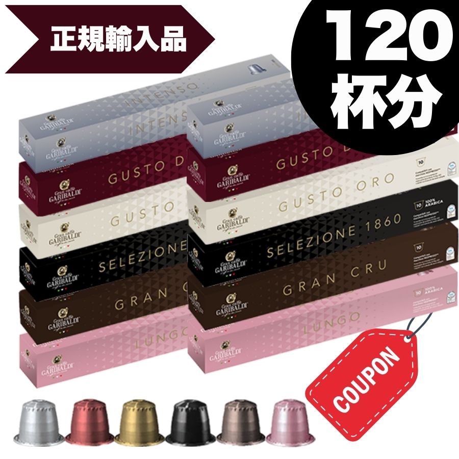 [正規品]GARIBALDI イタリア産 ネスプレッソ 互換 カプセルコーヒー12箱(120カプセル)6種アソート合計12箱セット NESPRESSO まとめ買い コーヒー豆【1〜2営業日以内に出荷】【送料無料】