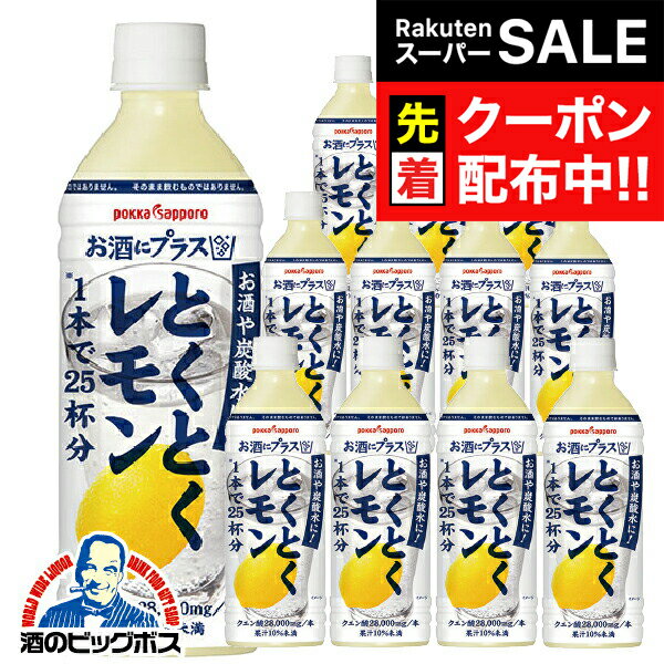 【スーパーSALE★先着クーポン】チューハイ 酎ハイ サワー 割り材 送料無料 ポッカサッポロ お酒にプラス とくとくレモン 1ケース/500ml×12本ペットボトル《012》『POK』