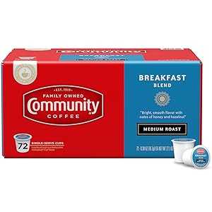 72 カウント (1 個パック)、ブレックファースト ブレンド、コミュニティ コーヒー ブレックファスト ブレンド 72 カウント コーヒー ポッド、ミディアム ロースト、キューリグ 2.0 K カップ ブルワーに対応、72 カウント (1 個パック) 72 Count (