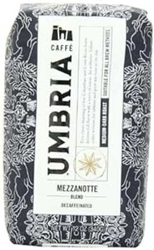 カフェウンブリア フレッシュシアトル全粒ローストコーヒー、メッツァノッテデカフェブレンド、12オンス バッグ Caffe Umbria Fresh Seattle Whole Bean Roasted Coffee, Mezzanotte Decaf Blend, 12 oz. Bag