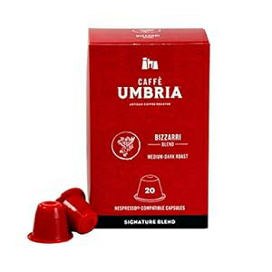 カフェ ウンブリア、ビザッリ ブレンド、ネスプレッソ互換ポッド、ミディアム ダーク ロースト、20 個入りボックス Caffe Umbria, Bizzarri Blend, Nespresso compatible pods, Medium-Dark Roast, Box of 20