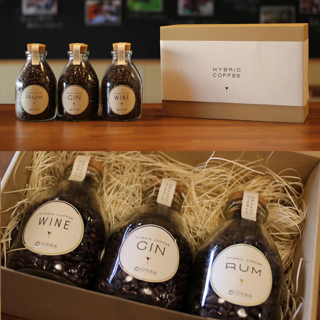 ハイブリッドコーヒー ギフト トリプルボックス(コルクボトル入) ラム ジン ワイン 和酒 SAKE 150g 3本 ギフトセット お中元 お歳暮 誕生日 結婚 出産 内祝い 父の日 母の日 引越し 退職 お礼 お祝い おしゃれ スタイリッシュ スペシャル レアコーヒー 豆 粉 プレゼント