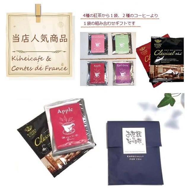 退職お礼 あす楽 メッセージシールプチギフト おしゃれ プチギフト イベント お返し お礼 お引っ越しご挨拶 粗品 プチギフト ドリップコーヒー ティーバッグ 大量 祝い 産休 異動 子供 卒園 卒業 入園/KIHEICAFE1p&コント・ド・フランス紅茶1p・PEバッグ・ネイビー/