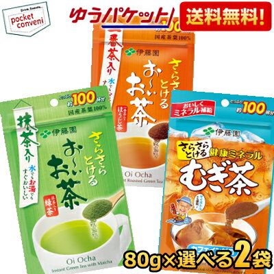 【ゆうパケット送料無料:2袋】 伊藤園 さらさらとけるパウダーシリーズ 80g×選べる2袋 お〜いお茶 抹茶入り緑茶 おーいお茶 粉末 1袋あたり約100杯分 パウダー 健康ミネラルむぎ茶 麦茶 むぎ茶 健康ミネラル麦茶 カフェインゼロ ほうじ茶 おーいお茶 焙じ茶 一番茶入り