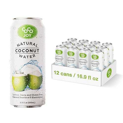 CoCo Joy Natural Coconut Water, 100% Coconut Water, Fresh, Low-Calorie, High-Calcium, Nutrient-Rich Coconut-Water Drink with Electrolytes, Potassium, and Other Nutrients, 12 pack
