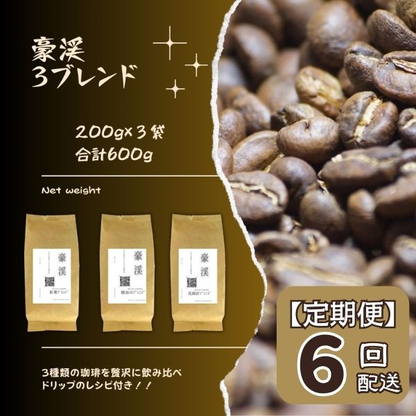 【ふるさと納税】総社珈琲 600g 3種飲み比べ 200g ×3 名勝豪渓編 コーヒー 珈琲 コーヒー豆 珈琲豆 コーヒー粉 粉 定期便 6回【 自家焙煎 飲料類 飲料 ドリンク 】【ドリップレシピ付き】