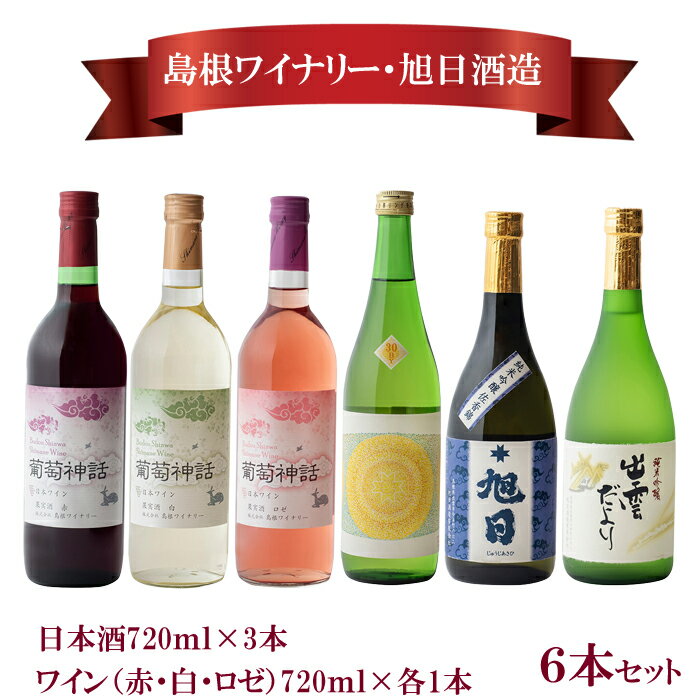 【ふるさと納税】日本酒・葡萄神話ワイン6本セット | 赤 白 ロゼ 純米吟醸 出雲だより 純米吟醸酒 旭日 旭日きもと純米酒「鏡草」