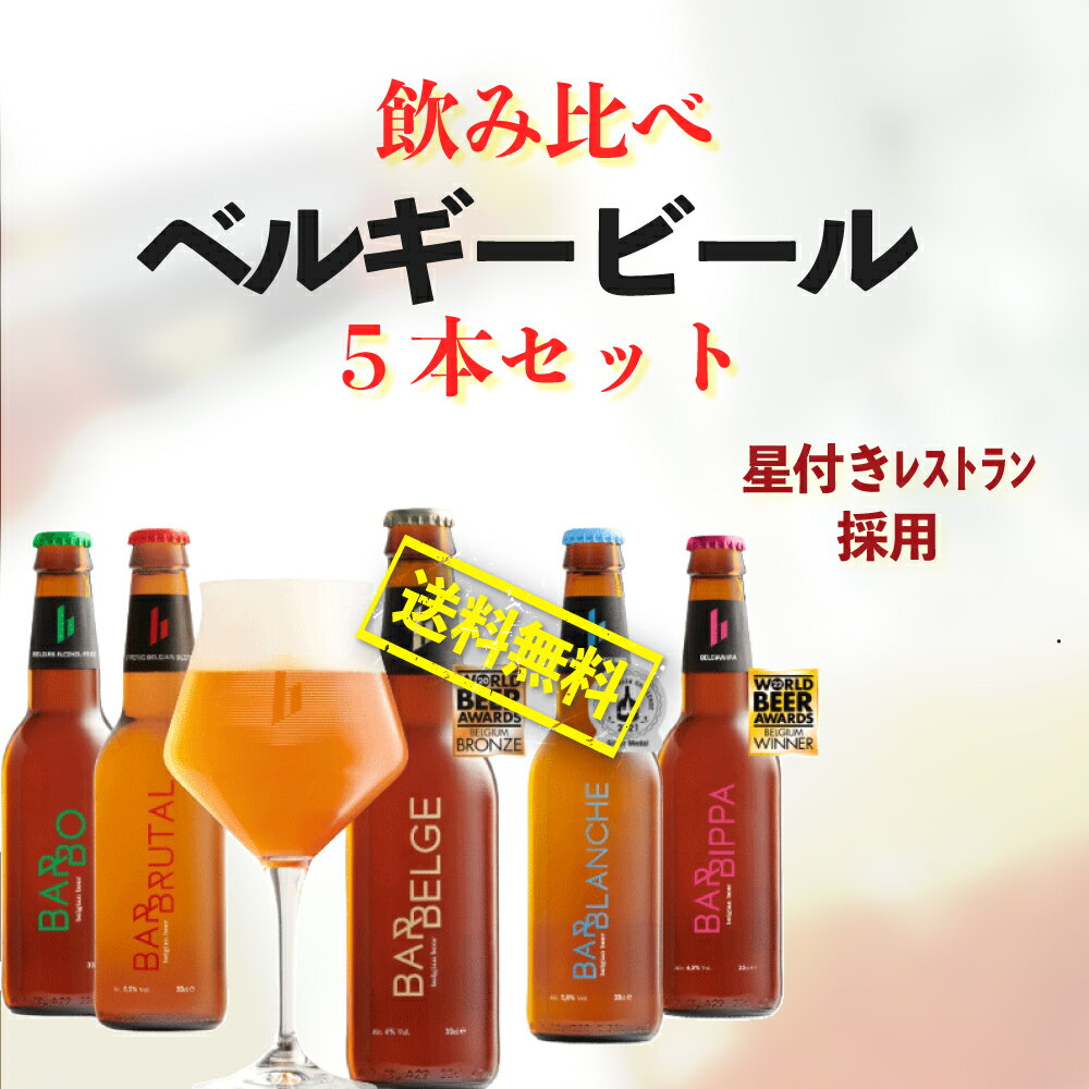 【送料無料】ベルギービール バル・ベルジュ 飲み比べ5本セット 330ml×5本 クラフトビール 瓶内二次発酵 ミシュラン星付き ゴエミヨ 料理に合う 瓶ビール ワイングラス ノンアル プレミアムビール お試しセット 常温保存 家飲み 受賞歴多数 香り豊か ビールギフト