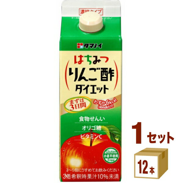 【名称】タマノ井酢 はちみつりんご酢ダイエット 濃縮タイプ 500ml×12本×1ケース (12本)【商品詳細】りんご酢にりんご果汁を加え、飲みやすいビネガードリンクに仕上げました。乳果オリゴ糖、食物繊維でおなかからキレイのアプローチ。ビタミンC配合。【原材料】りんご果汁、りんご酢、乳糖果糖オリゴ糖、水溶性食物繊維、エリスリトール、はちみつ/香料、V.C、甘味料(アセスルファムK、スクラロース)【容量】500ml【入数】12【保存方法】7〜15度の温度が最適。高温多湿、直射日光を避け涼しい所に保管してください。【メーカー/輸入者】タマノ井酢【JAN】4902087155894【注意】ラベルやキャップシール等の色、デザインは変更となることがあります。またワインの場合、実際の商品の年代は画像と異なる場合があります。
