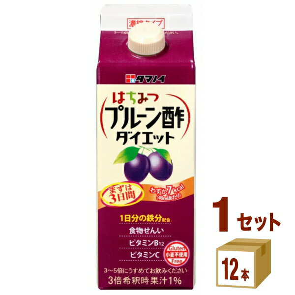 【名称】タマノイ酢 はちみつプルーン酢ダイエット 濃縮タイプ500ml×12本×1ケース (12本)【商品詳細】体に嬉しい鉄分とプルーン酢のおいしい組み合わせ。不足しがちな食物繊維やビタミン類も配合。毎日の健康を応援します。【容量】500ml【入数】12【保存方法】7〜15度の温度が最適。高温多湿、直射日光を避け涼しい所に保管してください。【メーカー/輸入者】タマノ井酢【JAN】4902087156570【注意】ラベルやキャップシール等の色、デザインは変更となることがあります。またワインの場合、実際の商品の年代は画像と異なる場合があります。【商品につきまして】最新の商品情報を表示するよう努めておりますが、メーカーの都合により、商品規格・仕様(容量、パッケージ、原材料、原産国など)が変更される場合がございます。 このため、実際にお届けする商品とサイト上の商品情報の表記が異なる場合がございます。予めご了承ください。【送料につきまして】離島地域は、別途メールにて追加金額をご連絡いたします。【ご注文時のキャンセル・変更につきまして】ご注文確定メール配信後のキャンセル・変更は受け付けておりません。【発送につきまして】・商品によって発送元・配送業者が異なる場合がございます。予めご了承ください。 ・異なる受注番号の商品を同梱することは出来ません。 ・PPバンド、透明テープで補強しております ・お届け先の変更、営業所留め指定はできません。・長期不在、お届け先の誤入力などによって、商品が弊社に持ち戻りとなった場合につきましては、衛生上の観点から再発送を致しておりません。商品代金につきましては、お客様のご負担となりますのでご注意ください。【返品・交換・キャンセル・保証につきまして】食料品となりますので、不具合のない場合、未開封・未使用に限らず一切返品を受け付けておりません。万が一お届けした商品に不具合がございましたら、商品到着後7日以内にご連絡をお願いいたします。交換等の対応をさせていただきます。 ただし7日を過ぎたものは対応できませんのでご注意ください。 7日以内でも、商品を使用または廃棄した場合は対応できません。外箱の汚損・破れ、缶の傷・へこみ等の返品・交換はできかねます。【その他注意事項につきまして】・12時以降のご注文は翌営業日の対応となります。 ・領収書発行は、商品発送時にお送りしますメール内のURLより発行しダウンロードをお願いいたします。 ・後払い決済でのお支払いについては、お支払い時の控えが領収書の代わりとなります。・重複発行を避けるために弊社では領収書は発行できません。ご了承ください。お買い物パンダのお皿もれなくもらえる