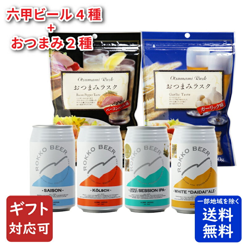 【ギフト対応可】六甲ビール 4種 各350ml + おつまみラスク2種 セット 地域別 送料無料 ビール プレゼント 飲み比べ お歳暮 御歳暮