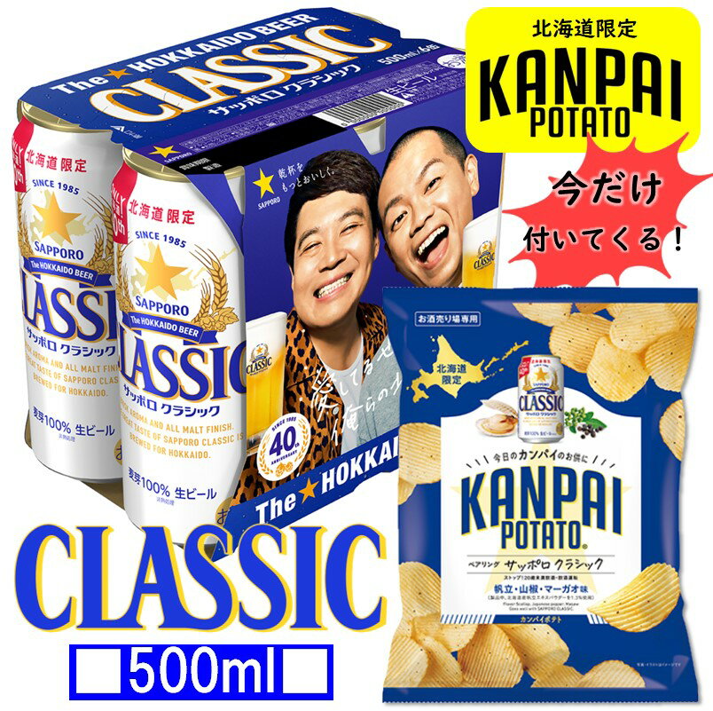 サッポロ クラシック 缶 500ml×6本 【1パック】+ KANPAI POTATO サッポロ クラシック専用 ポテトチップス 1袋 北海道期間数量限定セット【同一規格4セットまで1個口送料】ポテチ