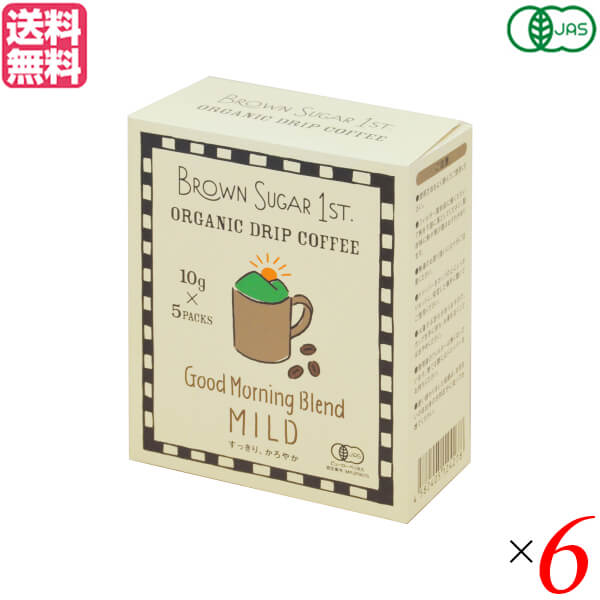 【BF限定!100円クーポン!学割2倍!】BROWN SUGAR 1ST. ブラウンシュガーファースト オーガニックドリップコーヒー グッドモーニング ブレンド マイルド 50g(10gx5) 6箱セット 送料無料