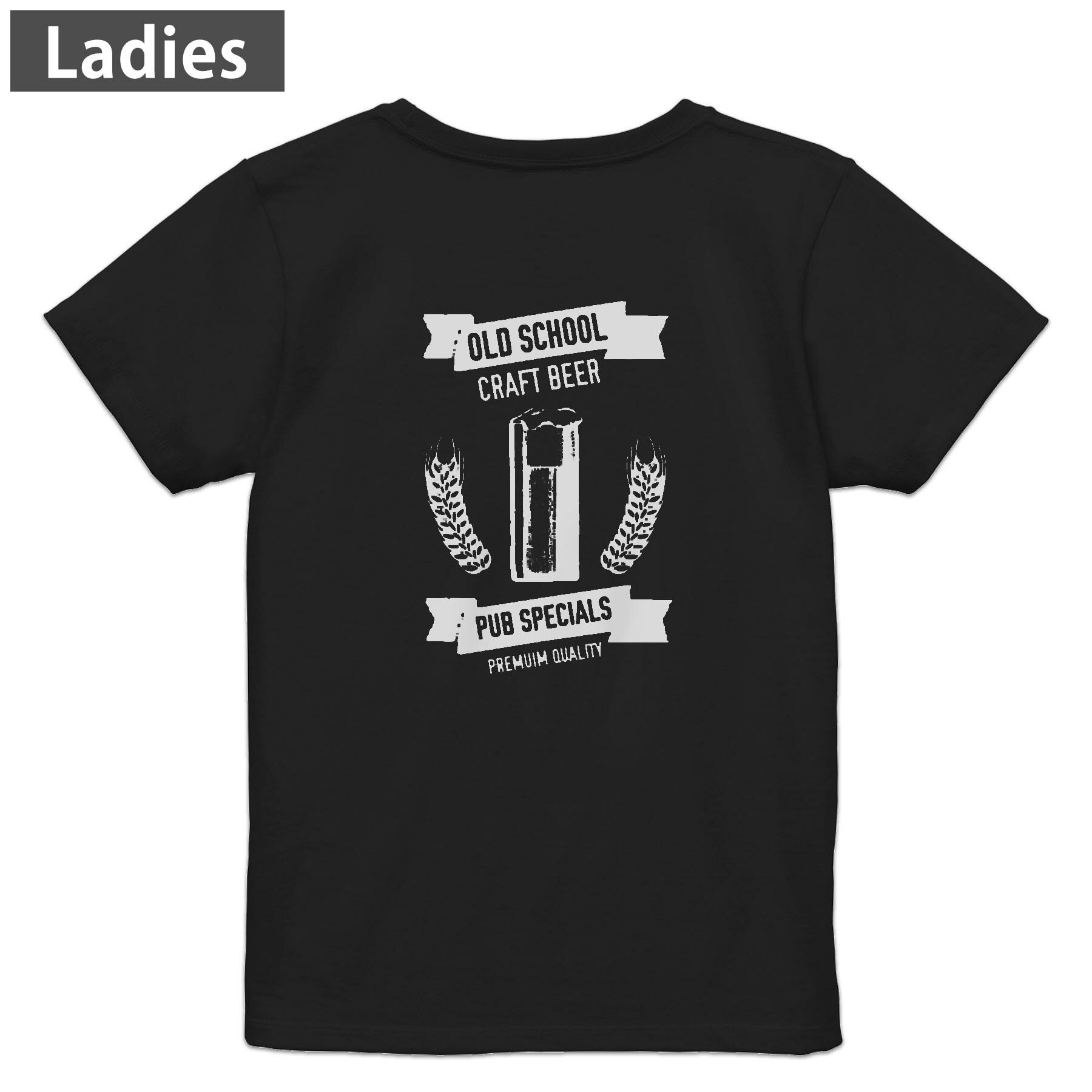 Tシャツ レディース バックプリント 半袖 ブラック 黒 デザイン M L tシャツ ティーシャツ T shirt 013895 ビール お酒 ロゴ