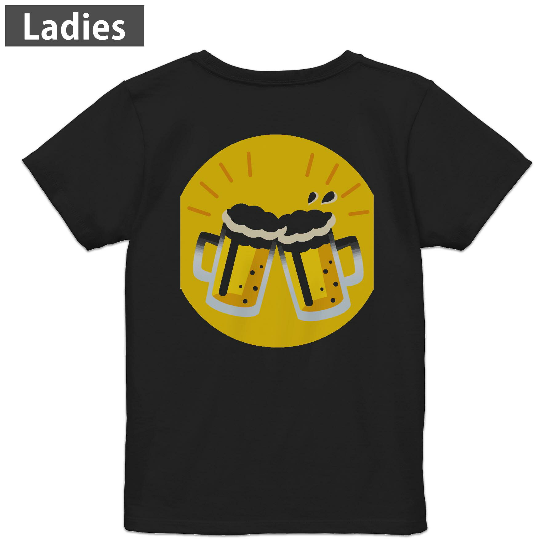 Tシャツ レディース バックプリント 半袖 ブラック 黒 デザイン M L tシャツ ティーシャツ T shirt 014114 ビール お酒