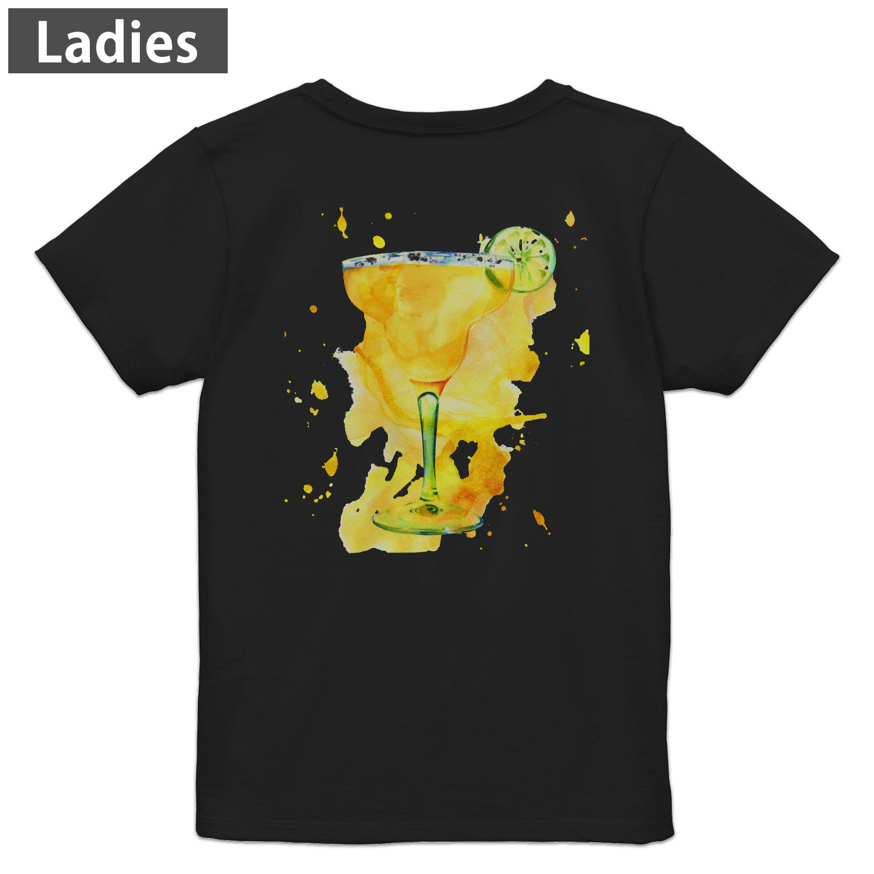 Tシャツ レディース バックプリント 半袖 ブラック 黒 デザイン M L tシャツ ティーシャツ T shirt 014587 カクテル お酒 黄色
