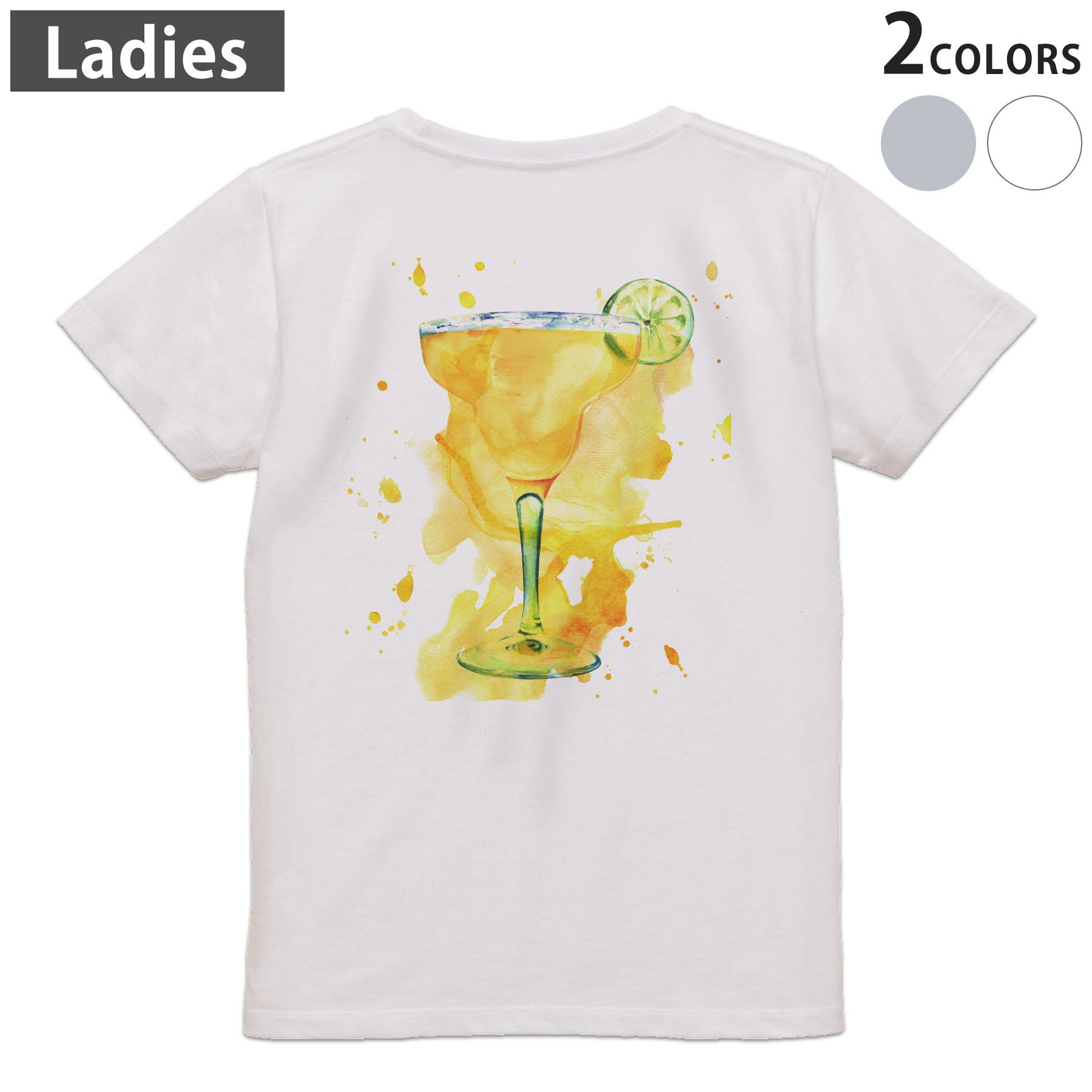 Tシャツ レディース バックプリント 半袖 ホワイト グレー デザイン M Lティーシャツ T shirt 014587 カクテル お酒 黄色