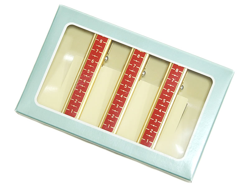 目盛りの付いた、通常より長いタイプの着付けクリップです。 3個入りで1セットになっています。 片面には、0.5cm刻みで目盛りが入っており、反面には中心線が合わせやすいよう、クリップ中央にラインが入っています。 大きめサイズですので、衿や帯などもしっかりと留まります。 クリップ先端には、生地を傷めないようゴムが付けられています。 また、ゴム表面は細かな凸凹となっており滑りにくくなっています おはしよりや帯のたれの長さを測ったり、着物・帯を挟んだり、着付け時に1つあると重宝するアイテムです。 ※可能な限り実物と同じ色になるよう写真を調整しておりますが、パソコンの環境やモニターにより色味や質感が若干異なる事があります。ご了承ください。 ■色目 : 赤・ゴールド ■サイズ : クリップ1個の大きさ/1.8×9.5cm 単価が低い商品なのに、送料に割高感を感じる方は・・・・ 一定の条件を事前にご承諾いただければ クリックポストでの配送に変更が出来ます。 詳しくはこちらをご参照ください