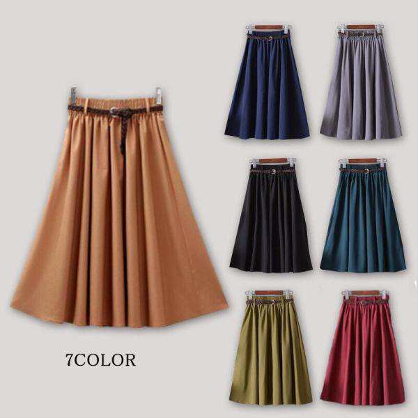 スカート ひざ丈 フレアスカート レディース 膝丈 ベルト付き Aライン ミモレ丈 ミディアム丈 秋 冬 秋冬 秋冬 ヒザ丈 ブラック 黒 グレー ベージュ ネイビー グリーン カーキ 紺 ウエストゴム 大人 ミモレスカート ミディアムスカート 20代