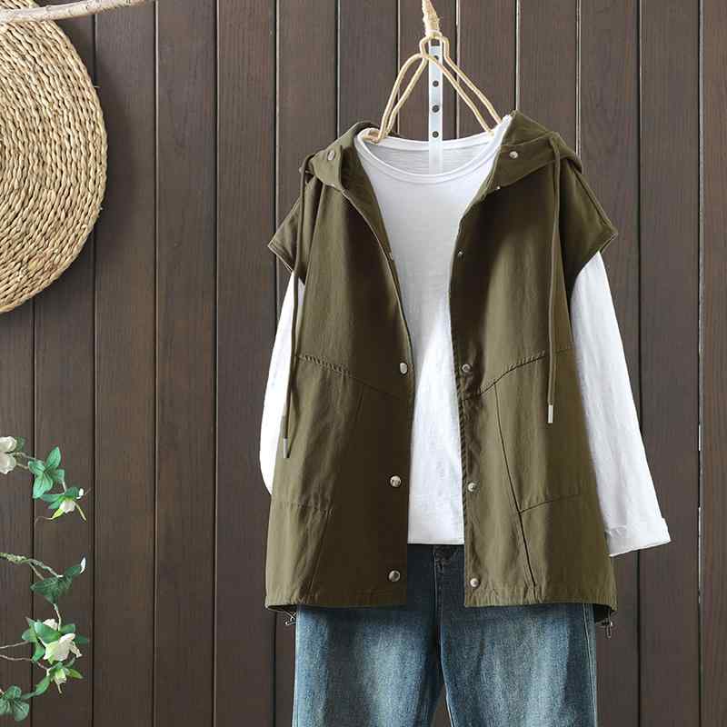 作業着 コットンリネン フード付き ベスト ジャケット レディース 夏用 万能 ゆったり 重ね着 カジュアル ノースリーブ アウターウェア トップス レジャー リゾート 休日 バカンス