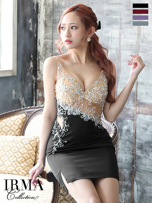 IRMA イルマ キャバドレス タイト ミニ ドレス フロントファスナー シアー 31290 キャバ ドレス タイトドレス ミニドレス 送料無料セクシー ラウンジ ワンピース キャバクラ キャバ嬢 ミニドレス 結婚式きれいめパーティードレス 谷間 即日発送