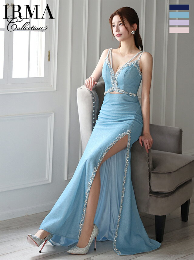【予約8月中旬】 イルマ IRMA ドレス ロング ノースリーブ ビジュー スリット バストカット ジップ 谷間 ウエストカット ワンカラー キャバドレス ロングドレス Aライン 誕生日 バースデー キャバ キャバクラ キャバ嬢 ワンピース ラウンジ im-ld-51877
