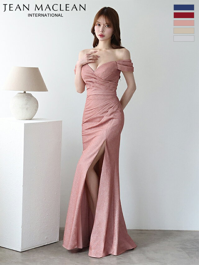 JEANMACLEAN ジャンマクレーン IRMA イルマ オフショルダー バストカット ワンカラー スリット ラメ ニット タック キャバドレス シンプル Aライン 大きいサイズ S〜Lサイズ バースデー キャバドレス 送料無料 キャバクラ キャバ嬢 ロングドレス 51904