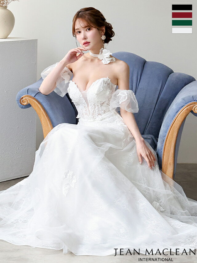 JEANMACLEAN ジャンマクレーン IRMA イルマ ベアトップ 2way パフスリーブ バストカット ワンカラー 刺繍 シアー キャバドレス シンプル Aライン 大きいサイズ S〜Lサイズ バースデー キャバドレス 送料無料 キャバクラ キャバ嬢 ロングドレス 51906