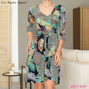 ワンピース 膝丈 7分袖 Vネック フレア カシュクール LAインポート リーフ メダリオン ラップカラフル 上品 きれいめ おしゃれワンピ S.M.L ブラック FROM USA ロサンゼルスアパレル JN240317LA013