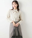 NEWYORKER WOMEN L-SIZE 【L】アムンゼンドットプリント 長袖ボウタイブラウス ニューヨーカー エルサイズ トップス シャツ・ブラウス ホワイト ネイビー【送料無料】