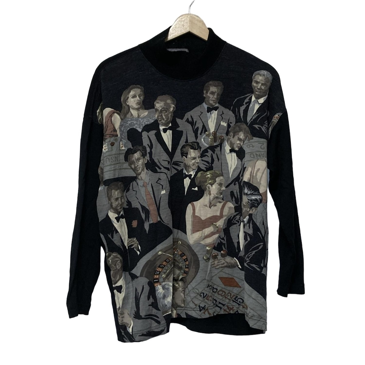【中古】TOKUKO 1er VOL(トクコ・プルミエヴォル) 長袖セーター ハイネック/カジノ柄 黒×ライトグレー×マルチ