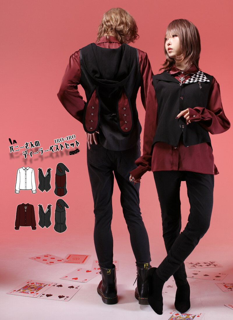 【最短即日出荷】バニーさんのディーラーベストセット|Favoriteオリジナル 2点セット トップス シャツ ベスト フード ユニセックス バニー うさぎ 耳 アニマル トランプ カジノ たかみん 【2024年8月下旬予約開始】