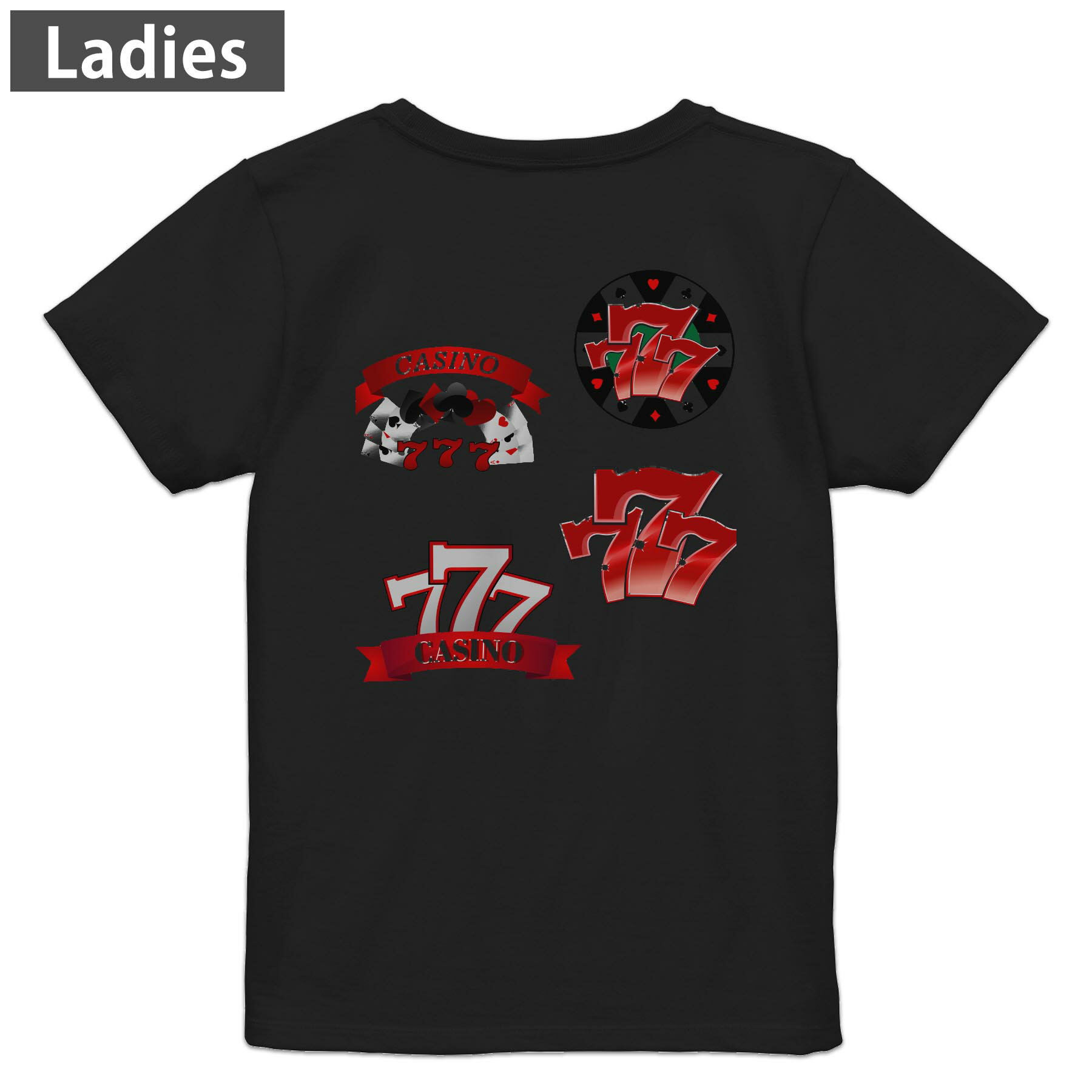 Tシャツ レディース バックプリント 半袖 ブラック 黒 デザイン M L tシャツ ティーシャツ T shirt 008919 赤 レッド カジノ スロット