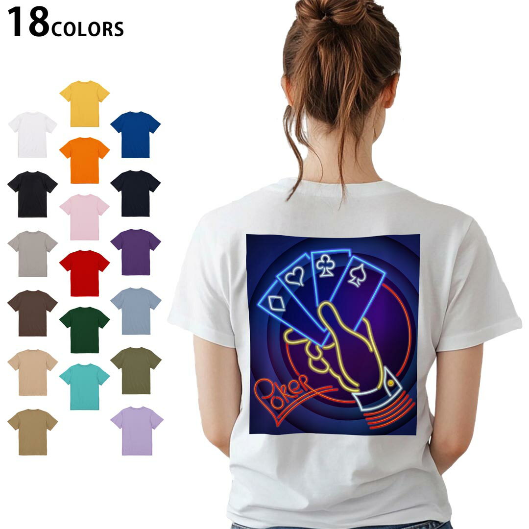 選べる18カラー Tシャツ レディース 半袖 ホワイト グレー デザイン M L Tシャツ ティーシャツ T shirt 007414 トランプ ネオン ポーカー カジノ
