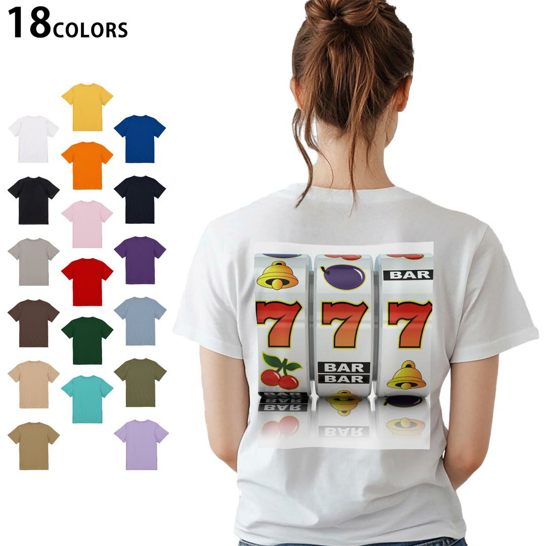 選べる18カラー Tシャツ レディース 半袖 ホワイト グレー デザイン M L Tシャツ ティーシャツ T shirt 008613 スロット カジノ 赤 レッド