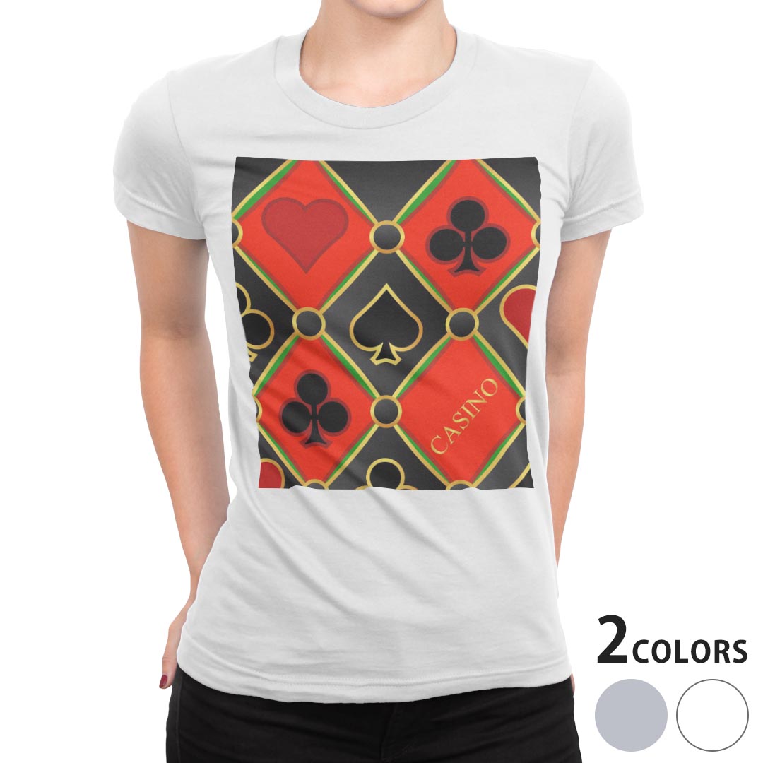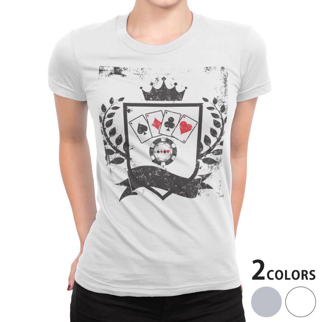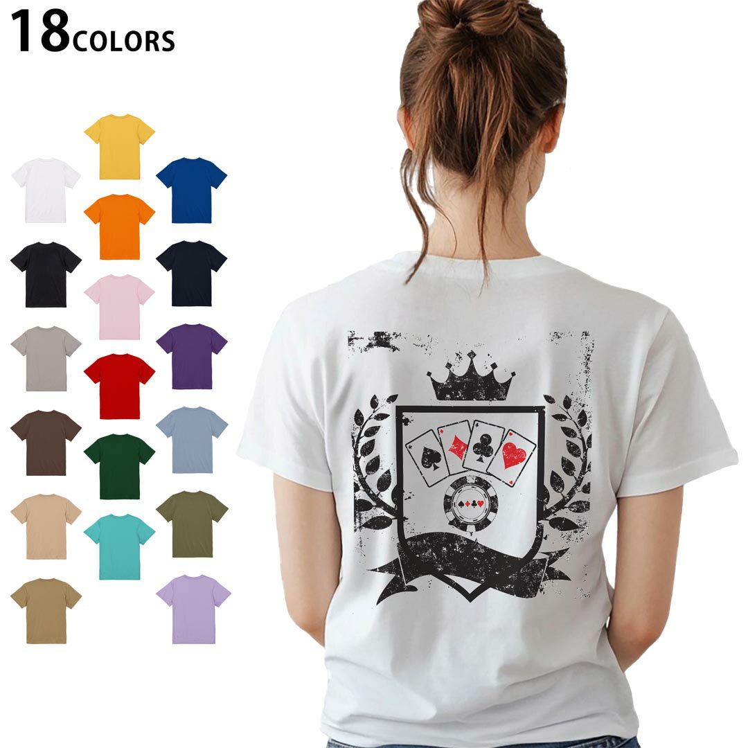 選べる18カラー Tシャツ レディース 半袖 ホワイト グレー デザイン M L Tシャツ ティーシャツ T shirt 008885 モノトーン トランプ カジノ